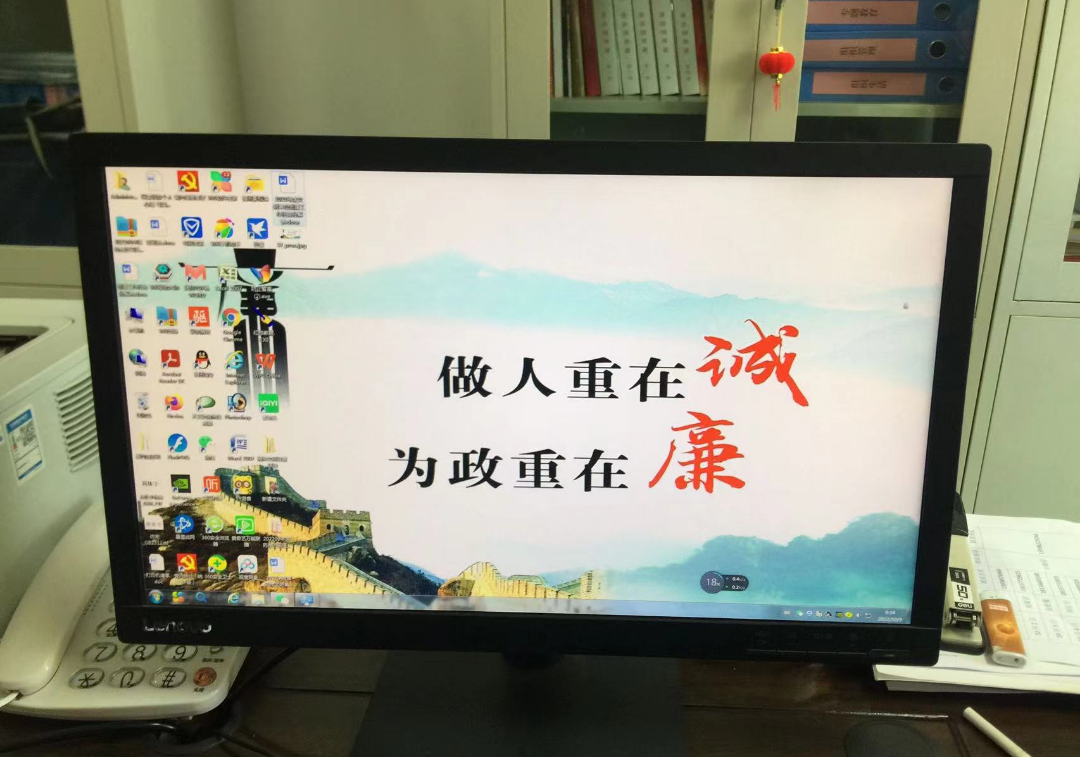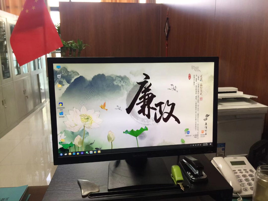 在电脑桌面上设置清廉文化相关图片,让廉政教育从每天打开电脑之时开始,成为党员干部每天上班接受教育的第一课。在潜移默化中受到清廉文化感染和警示,起到了时刻警醒和警钟常鸣的作用,提高了干部职工廉洁从政的自觉性,营造了单位“崇尚廉洁、风清气正”的良好氛围。